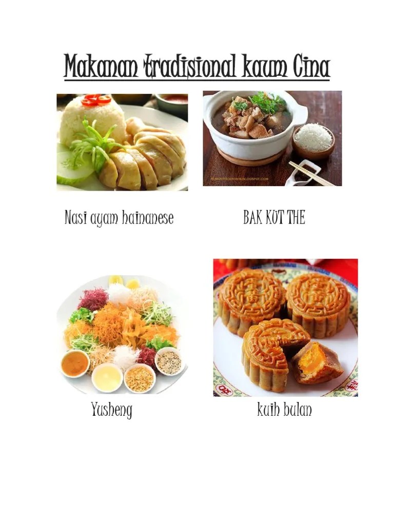 Kaum Cina Gambar Makanan Tradisional Malaysia / Makanan Tradisional Di Malaysia. Setiap kali sambutan perayaan sesuatu . Ianya merupakan simbolik majmuk yang cukup penting dalam masyarakat cina untuk mengeratkan silaturahim sesama kaum keluarga dan sahabat andai.dalam hal ini, . Makanan tradisional sangat popular dalam kalangan masyarakat kita di malaysia yang kaya dengan pelbagai adat dan budaya. Senarai makanan tradisional masyarakat cina di malaysia yang popular dan masih diteruskan sehingga hari ini. Bak kut the (肉骨茶) secara harfiah bermaksud "daging bone teh". Ini masakan yang unik popular di malaysia. Ini sup herba china direbus dengan rusuk cadang . The national sport of malaysia is sepak takraw.